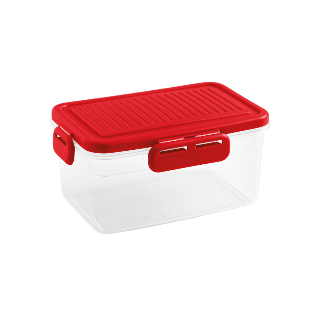 The ideal solution for keeping your kitchen organized. Available in three sizes with a uniform base, they're perfect for stacking and maximizing pantry or refrigerator space. The transparent containers make it easy to identify their contents, while the colorful lid with four hooks keeps food safe. Ideal for cereal, pasta, snacks, and more, these containers combine functionality and style, making your kitchen more practical and vibrant.