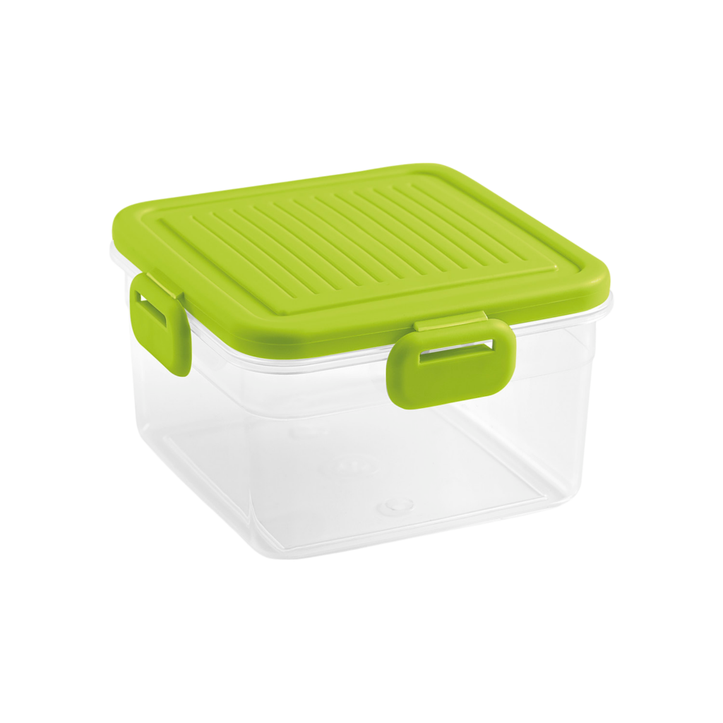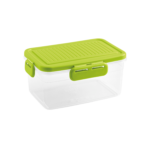 The ideal solution for keeping your kitchen organized. Available in three sizes with a uniform base, they're perfect for stacking and maximizing pantry or refrigerator space. The transparent containers make it easy to identify their contents, while the colorful lid with four hooks keeps food safe. Ideal for cereal, pasta, snacks, and more, these containers combine functionality and style, making your kitchen more practical and vibrant.