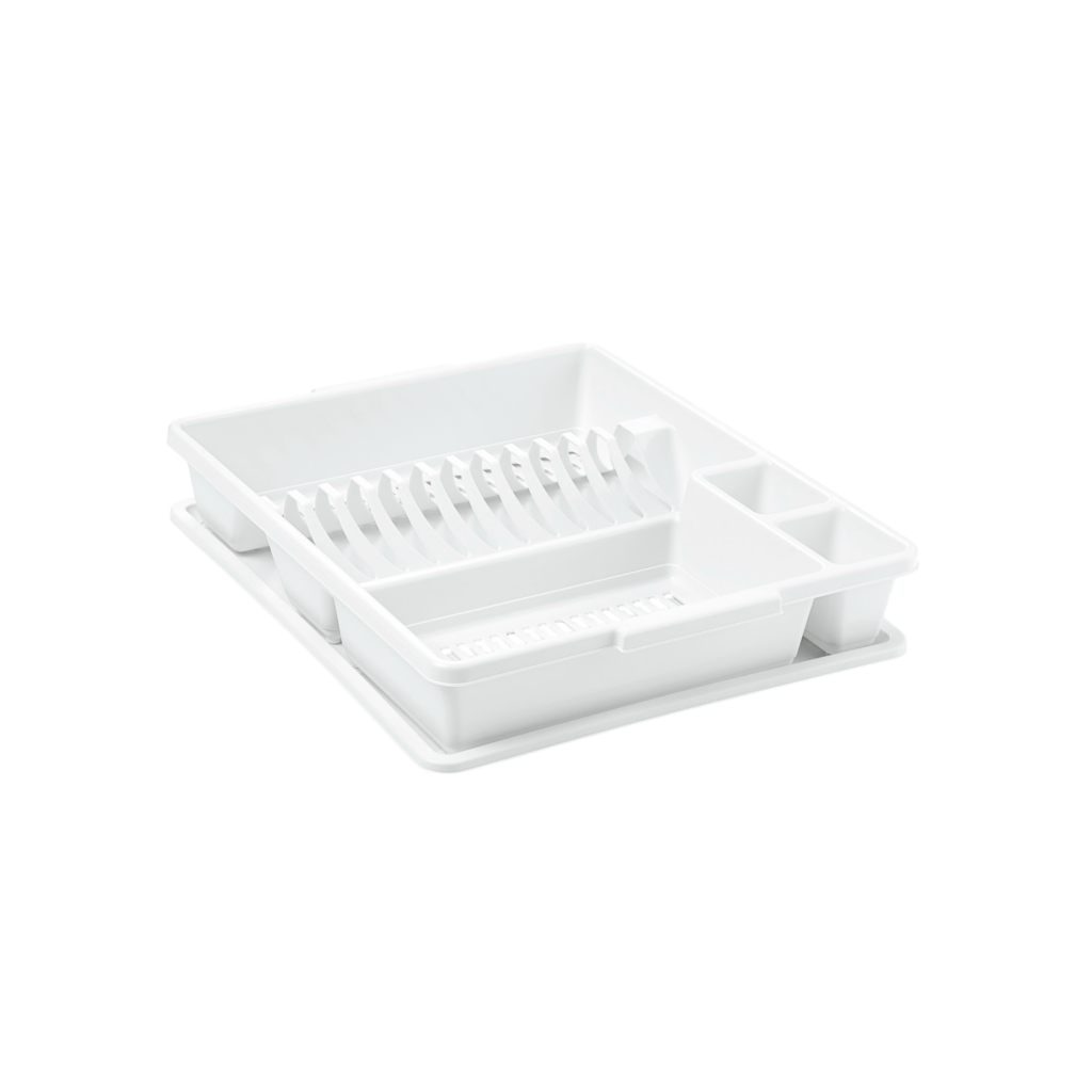 Ideale per lasciar scolare in modo ordinato stoviglie e utensili da cucina. È abbastanza spazioso da contenere piatti di diverse dimensioni, bicchieri e utensili, assicurando che tutto si asciughi in modo ottimale e sicuro. È provvisto di un pratico vassoio prendigoccia.