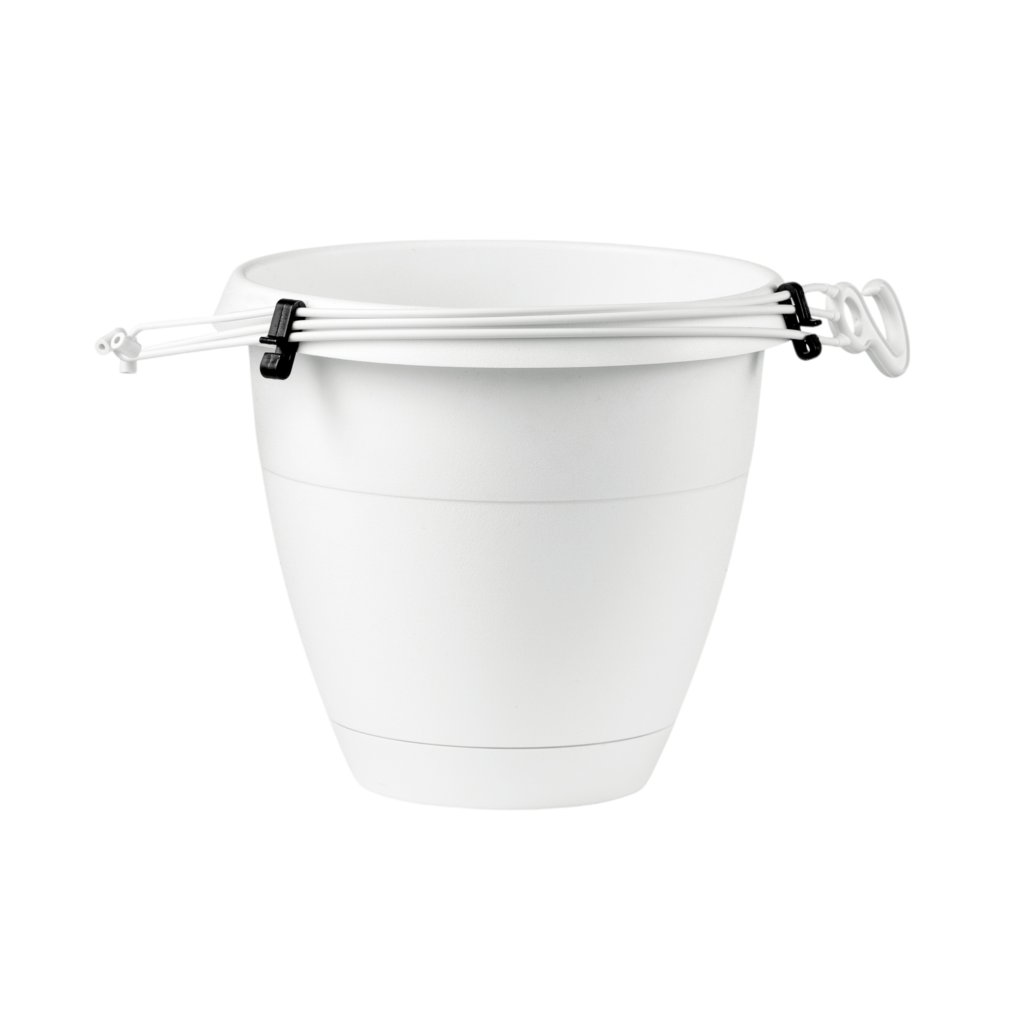 Il supporto ideale per creare composizioni verticali, permettendo di sfruttare al meglio anche gli spazi più ristretti. Dotato di pratico supporto con gancio per essere appeso con facilità, è completo di sottovaso integrato che assicura una ottimale gestione dell'acqua, mantenendo l’ambiente pulito e ordinato.